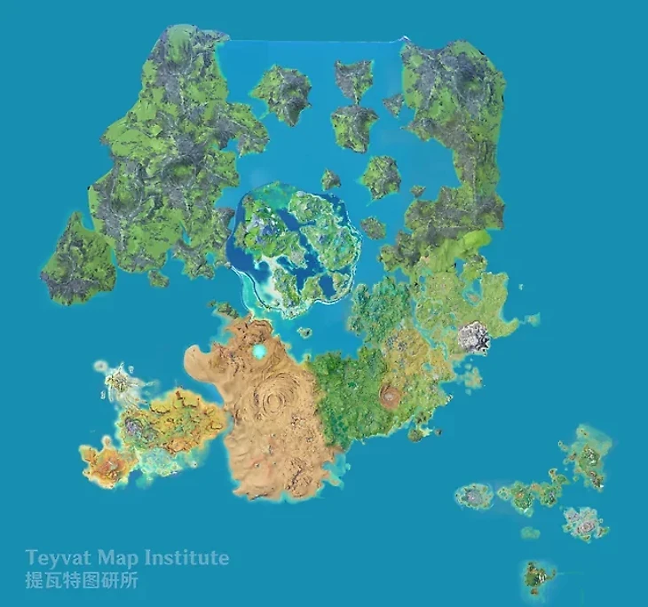Официально карту Тейвата еще не представили. Но каждый год датамайнеры показывают территории, которые еще не проработаны. Самая свежая карта – на момент патча 5.0, без фестивального острова Натлана и без Нод-Края. Но по ней можно предположить, что Снежная будет масштабнее, чем предыдущие регионы.