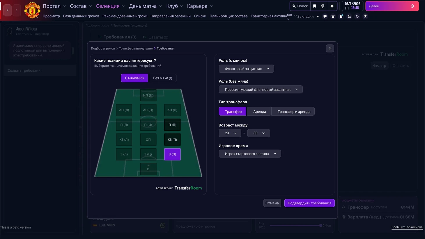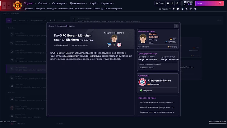 Переговоры с футболистами остались прежними. Если вы не играли в последние части FM и решите поднять кризисный «МЮ», то удивитесь неожиданным сложностям. Я был готов, что суперзвезды откажутся от переезда в Манчестер из-за невыхода клуба в ЛЧ, но упертость молодых футболистов застала меня врасплох. Некоторые юниоры отказывались от перехода по необъяснимым причинам: то ли не верили, что будут играть в основе, то ли позабыли о величии «Юнайтед».
