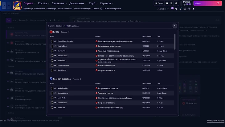 Женский футбол – открытие FM26. Sports Interactive не просто так рекламировала новый режим и серьезно над ним потрудилась. Женская карьера стартует параллельно с мужской и предлагает на выбор 11 стран и 14 лиг (по два дивизиона получили Англия, Испания и Швеция). Еще больше я удивился, когда увидел заполненные клубы и фото футболисток в некоторых неактивных чемпионатах. При этом максимальная база данных почти ничего не весит и не тормозит игру.