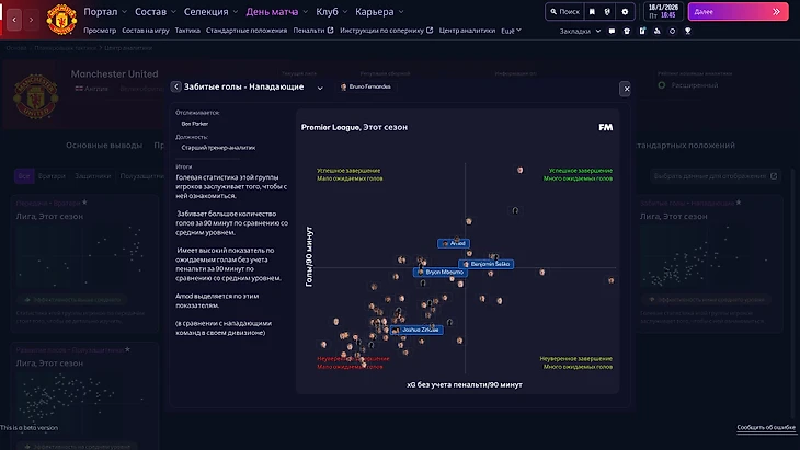 Для самых настойчивых FM предлагает глубокую аналитику команды и соперников. Тут много любопытных данных и диаграмм, хотя аккуратность графиков страдает.