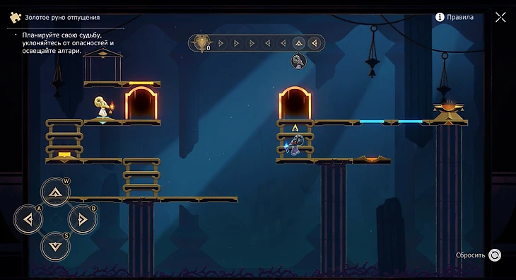 4. Самое сложное руно – четвертое. Дважды налево, один раз вниз – не прыгайте с лестницы на кнопку, идите направо. Потом трижды направо, один раз вниз и дважды направо.