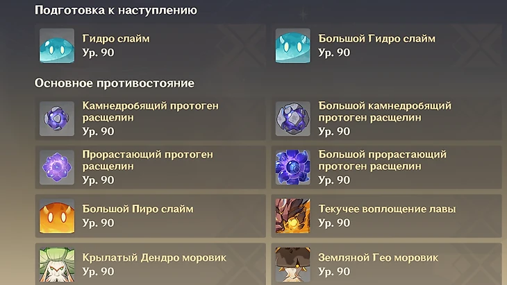 Основное противостояние. Уровень усиления повышает урон от Цветения, Вегетации и Бутонизации на 300%, а урон от Лунной бутонизации — на 400%. Лучше всего подойдут команды с Лунной бутонизацией. Если таких нет, соберите отряд на основе обычного Цветения.