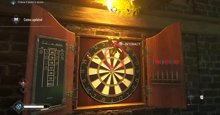 После этой миссии вы можете посещать бар практически в любой момент игры. Здесь вы найдете второй в Bloodlines 2 крест, торчащий из доски по дартсу.