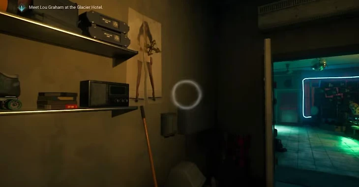 Как только вы получите доступ к пентхаусу, поднимитесь по лестнице и пройдите по балкону до места, где на стене висит картина со старым зданием. Вы увидите крест, торчащий из картины.