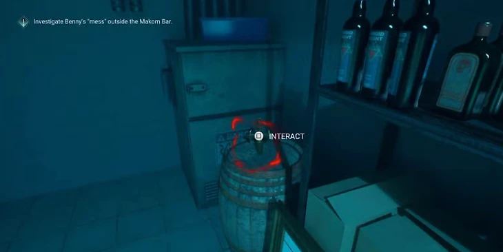 Войдя в бар, пройдите в заднюю комнату. Там пройдите в задний угол, и вы увидите крест, торчащий из бочки.
