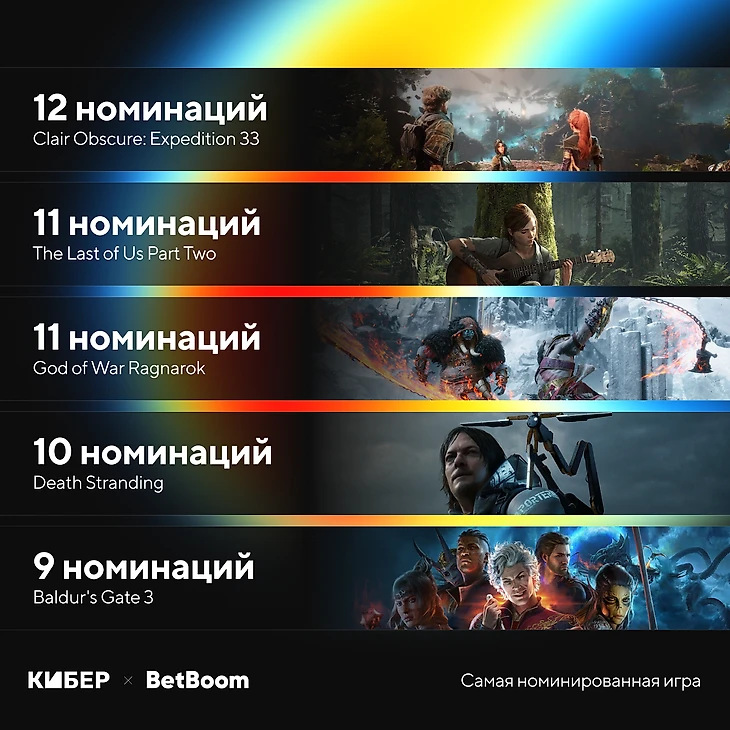 Самая номинированная игра: Clair Obscur: Expedition 33 – 12 номинаций