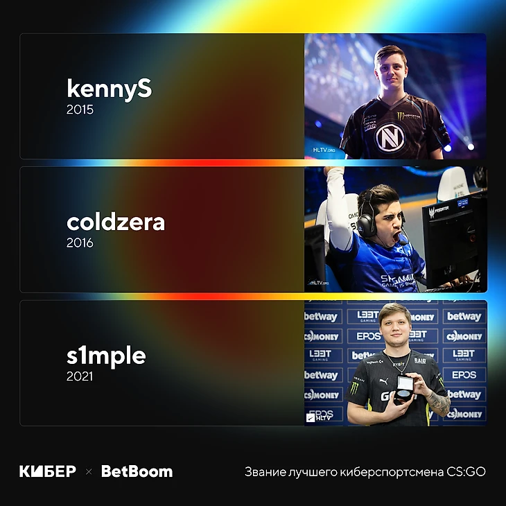Дотеры не так часто появляются в списках – всего три номинации и ни одной победы. Зато у каэсеров с этим получше: в разные годы звание лучшего киберспортсмена получали Кенни «kennyS» Шраб, Марсело «coldzera» Давид и Александр «s1mple» Костылев.