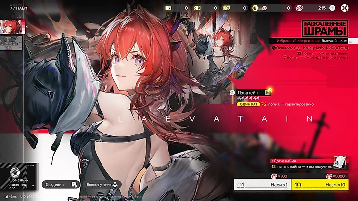 Во временном баннере гарантированное получение – 150 круток. Вместо изображенной на картинке героини могут упасть другие оперативники, не представленные в обычном стандарте. В случае Лэватейн это Ивонна и Гилберта. Эти героини не появятся в стандартном баннере после удаления из временного. Также можно проиграть 50/50 любому из стандартных персонажей.