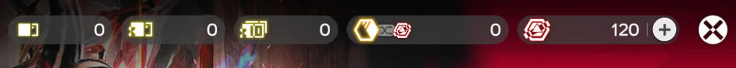 Слева направо: специальное разрешение на наем (ивентовая крутка), разрешение на наем на баннере (временная ивентовая крутка, исчезающая с баннером), разрешение х10 на наем на баннере (временные 10 ивентовых круток), ориджеметрий (валюта для покупки боевого пропуска, не тратьте!) и ороберил (валюта для покупки любого типа круток).