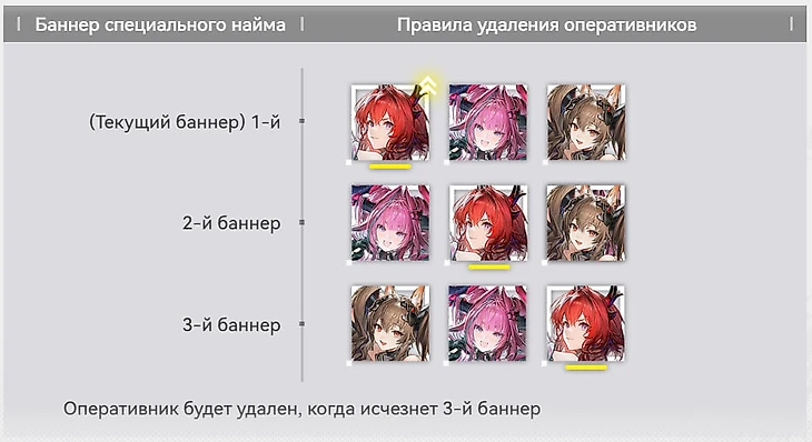 Из стандартного баннера можно получить любого из пяти стандартных шестизвездочных оперативников с гарантом 80 круток. За каждые 10 попыток падают пятизвездочные, и во всех остальных случаях падают четырехзвездочные.