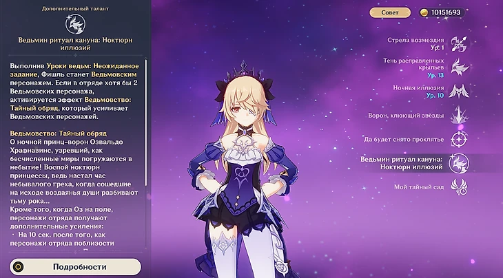 Если завершите квест персонажа, он станет «Ведьмовским» и будет использовать усиления навыков через резонанс «Ведьмовство: Тайный обряд». Он прописан во всех обновленных талантах и созвездиях таких героев.