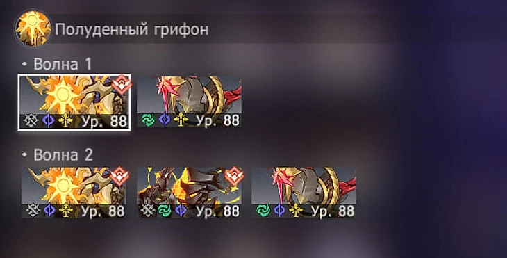 На девятом этаже враги 88 уровня. В первой половине понадобятся герои с квантовым и физическим типом урона. Поскольку у полуденного грифона нет особых сопротивлений другим стихиям, а также он подвержен всем эффектам, можно взять Серебряного Волка или персонажей, которые сами умеют добавлять уязвимости.