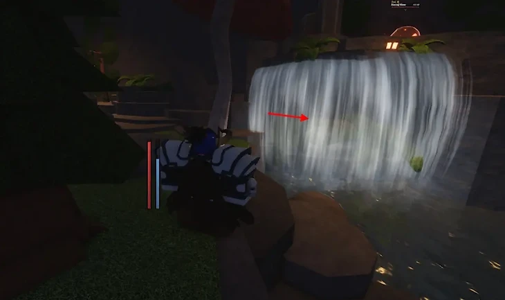 Войдя в пещеру, ищите водопад возле реки. Пройдите сквозь него и двигайтесь через камень с выемкой в центре.