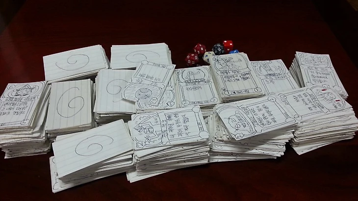 Сколько карт он сделал, никто не знает, но это и не важно. Что хорошо, можно играть, чем захочется. Наверняка он еще наслаждается игрой за «патрон-воина», ведь последний патч его никак не коснулся. Захотел: перерисовал карточку, не захотел — ну, и ладно. Все рандомные эффекты он определяет по игральным костям. В общем, у ребят там служба весело проходит.