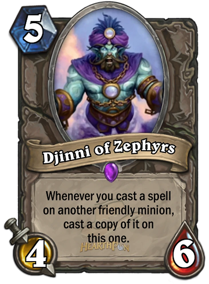 Когда вы разыгрываете заклинание на другое дружественное существо, его эффект накладывается на Djinni of Zephyrs.