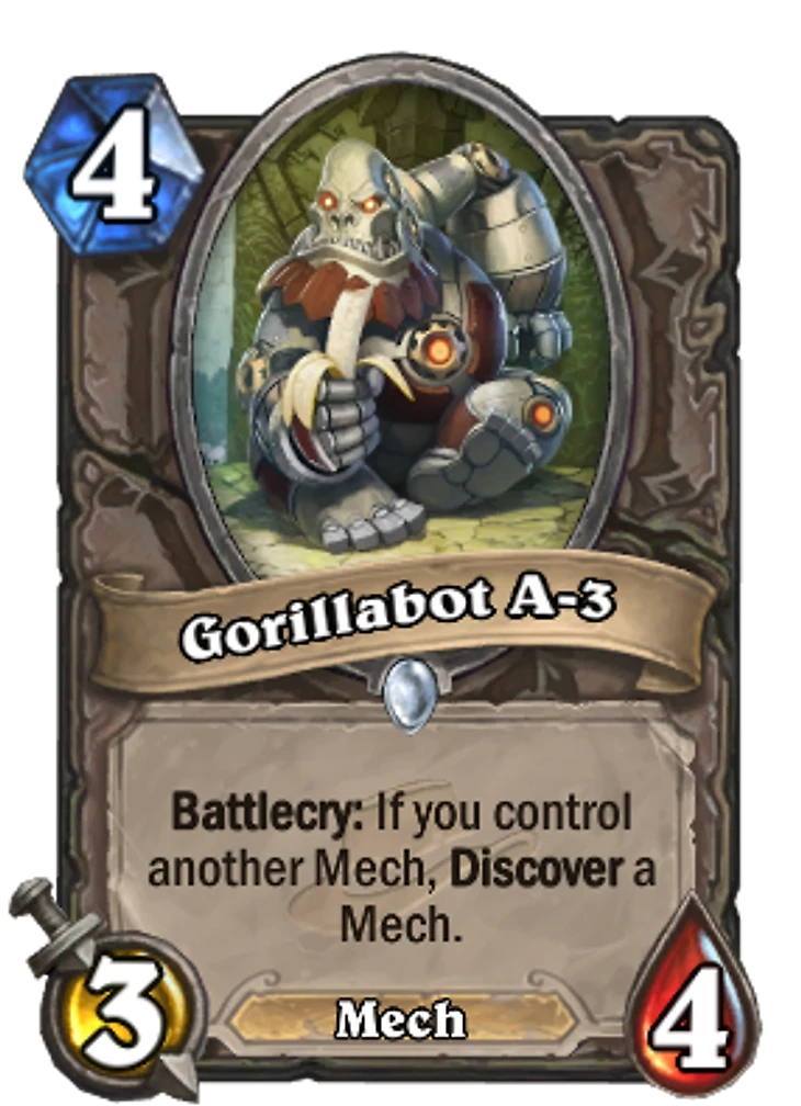 Ранкед: как ни странно, но эта карта в отличие от предыдущей имеет некоторые перспективы в рейтинговой игре, потому что её если и будут играть, то только в колодах где много других мехов и активировать способность почти всегда будет чем, да и лишняя карта для такой колоды не будет лишней. И еще потому что хороших механизмов больше чем хороших зверей, и синергируют они между собой намного лучше.