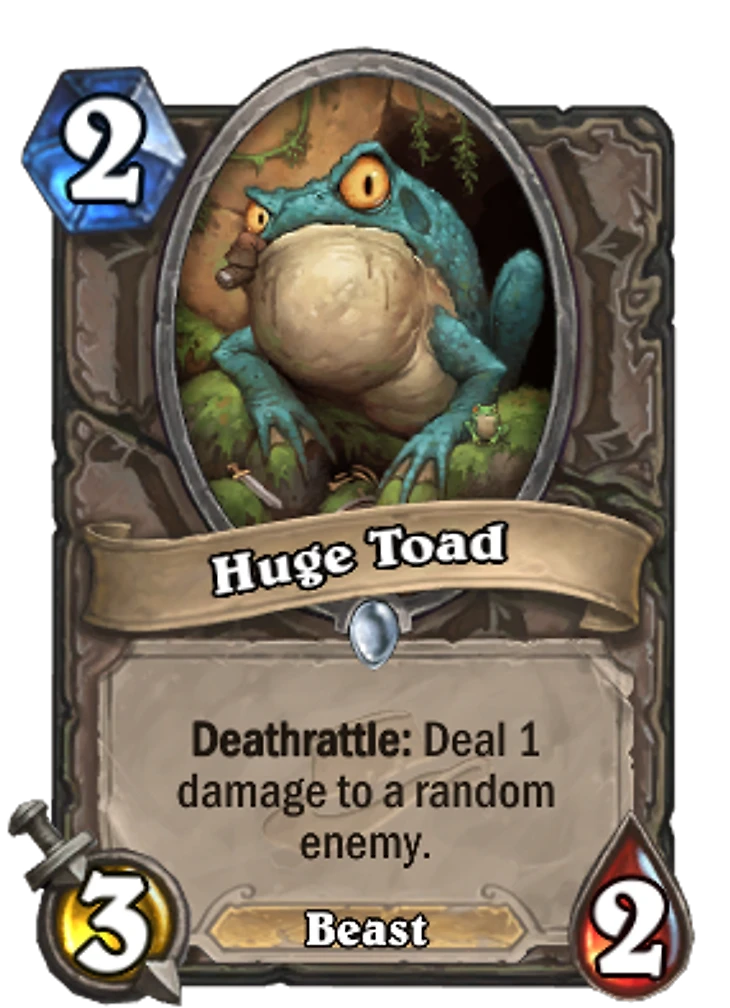 Нужно понимать, что она может удвоить далеко не все боевые кличи: например, «Кислотный слизнюк» не может два раза уничтожить оружие противника. Известно, что карты, которые направленно наносят урон своим батлкраем, будут бить в одно существо 2 раза, поэтому непонятно как будут работать карты с направленным эффектом, типа немоты или уничтожения существа. Можно ли, например, будет убивать двух великанов одним «Опытным охотником»? Может быть, я просто упустил этот момент, и разработчики об этом уже где-то писали, так что если у вас есть информация по этому поводу, отпишите в комментариях.