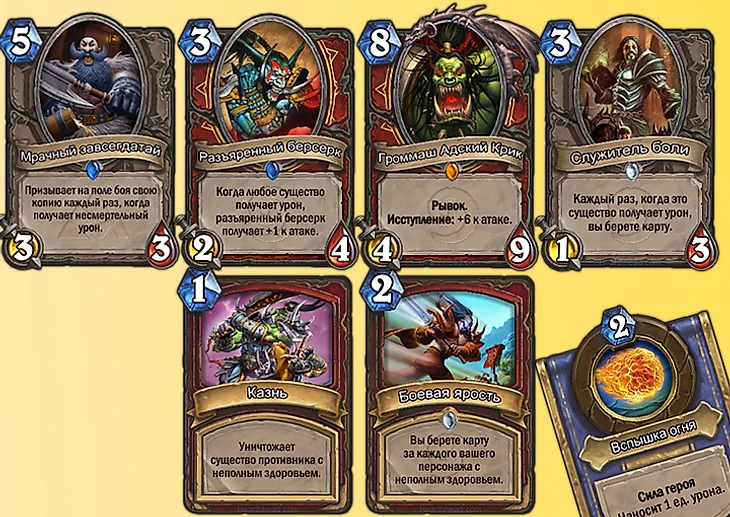 Идеальной заменой Силы Воина является «Вспышка огня» Мага. Вот с какими картами из колоды «Патрон-Воина» она может взаимодействовать: