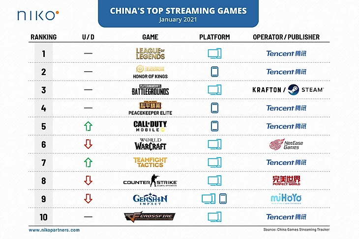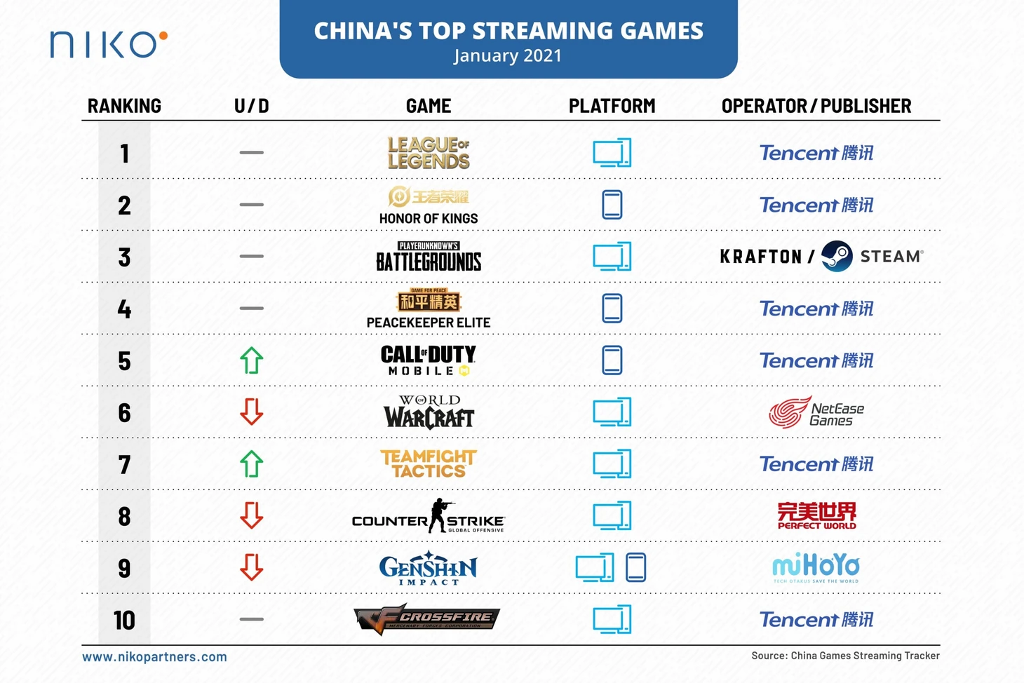 Лидером среди издателей стала Tencent – сразу шесть игр компании вошли в топ-10 рейтинга.