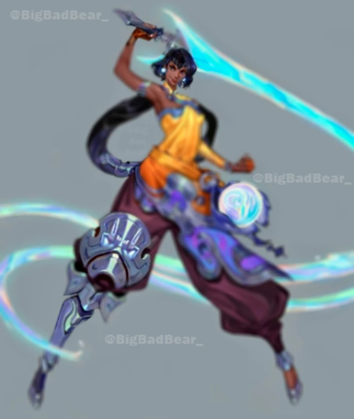 Блогер Big Bad Bear представил модельку в своем твиттере. Новый чемпион – девушка, которая держит в руках водяной хлыст. Big Bad Bear также написал, что персонажа зовут Нила (Nilah).