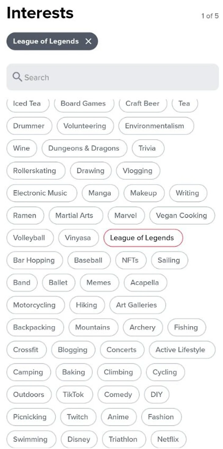 В Tinder можно выбрать своим увлечением Лигу Легенд. Доту – нельзя
