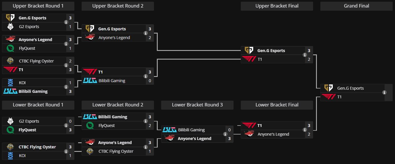 Участники: T1, Gen.G, Anyone’s Legend, CTBC Flying Oyster, FlyQuest, KOI, Bilibili, G2, Furia, GAM.