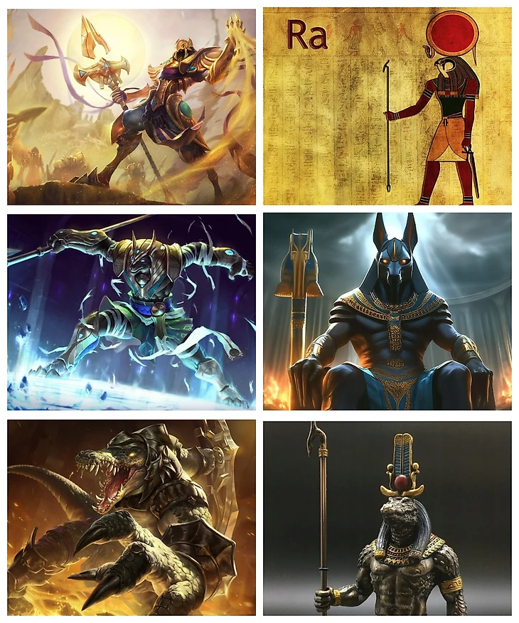 Не знаю, старше ли Ари нашего следующего персонажа, но собирательный образ Азира был вдохновлен самым первым древнеегипетским богом солнца – Ра. На этом Riot Games не остановились. Игроки, которые не являются сильными знатоками истории Египта, невооруженным глазом могут заметить, что Насус вдохновлен богом царства мертвых Анубисом, а Ренектон – богом воды и разлива – Себеком.