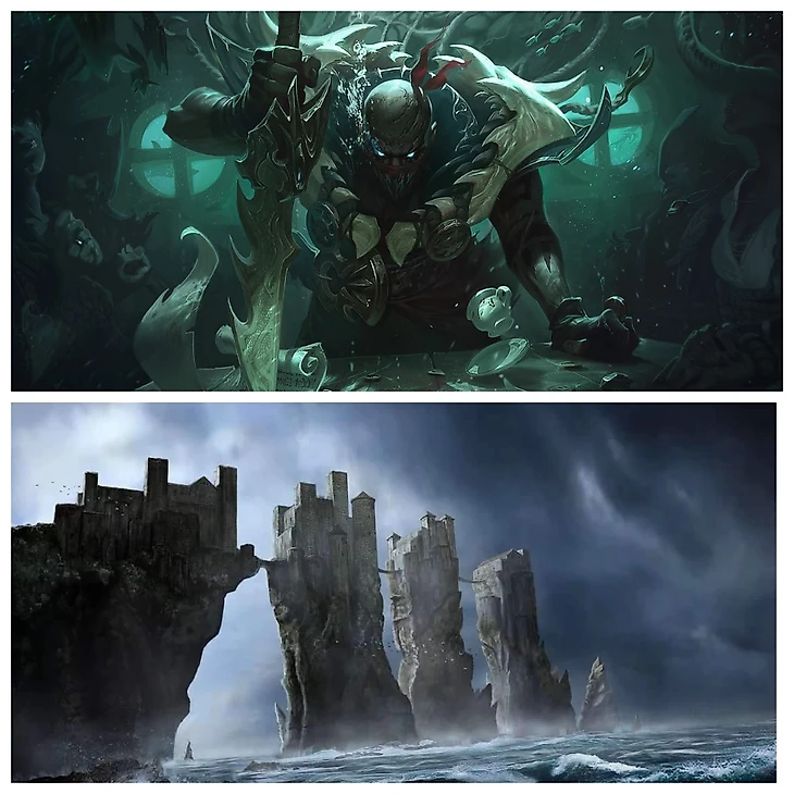 Пайк из Лиги Легенд был простым трудягой, разделывающим туши морских чудовищ. Но однажды, устав от рутинной работы, он отправился в плавание с другими моряками. Ни одно существо не ценилось торговцами больше, чем Челюстозуб, в пасти которого располагались железы, из которых получали сапфилит – редчайшее вещество. Маги по всей Рунтерре использовали сапфилит для приготовления зелий (привет червям из «Дюны»). В процессе поимки Челюстозуба Пайк сам угодил в пасть морского чудища. Команда корабля решила, что юный авантюрист был съеден, а останки пошли на дно в качестве корма мелким сошкам. «То что мертво, умереть не может, но восстанет снова крепче и сильнее» – это центральная религиозная догма жителей Железных островов в романе «Песнь Льда и Огня». Так и наш герой под влиянием вещества, выделяемого из желез Челестозуба, вернулся с того света совсем иной личностью. Пайк вписал свое имя на доске розыска, как самый кровопролитный потрошитель. Те, кто гордо звался охотниками на монстров, теперь сами стали добычей монстра, а Пайк еще только начал свое дело…