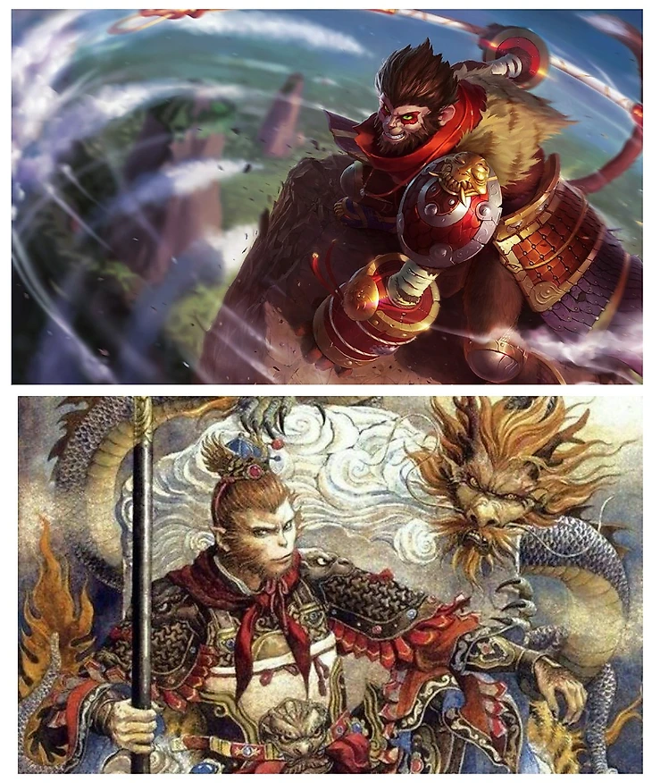 Следующий китайский литературный персонаж – довольно избитый образ для многих игр, аниме и фильмов. Сунь Укун – царь обезьян, который широко известен по литературным романам. На китайском языке его имя читается как Sūn Wùkōng. Лесника Лиги Лигенд зовут Вуконг. Приставка Ву образована от боевого искусства Вуджу, которым и владеет персонаж.