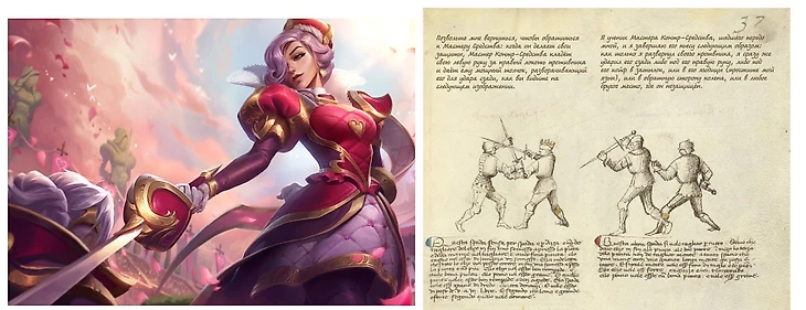Один из самых сильных дуэлянтов в игре – чемпион Фиора. Она вдохновлена исторической личностью – странствующим мастером фехтования Фиоре де Либери. Он является основоположником этого искусства боя. Древнейшая рукопись по фехтованию «Цветок битвы» появилась благодаря трудам итальянца. Книга пользуется спросом и по сей день. Любой новичок, орудующий рапирой, не прочь подчерпнуть знаний от мастера прошлых столетий.