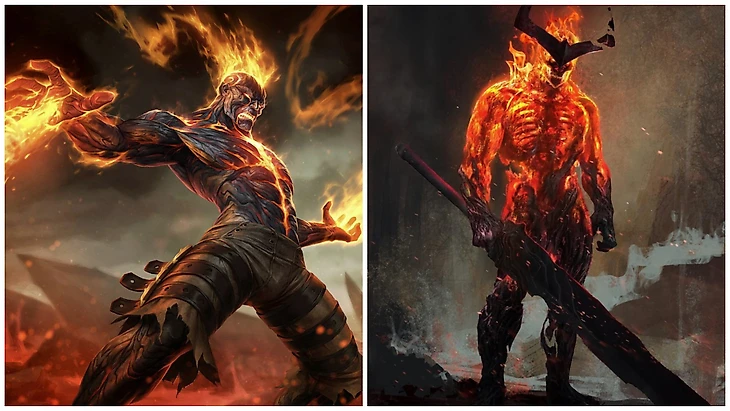 Мы часто видим во многих вселенных героев, обладающих стихиями огня, воды, земли и воздуха: Человек-факел из Marvel и Аквамен из DC. Лига легенд так же не обошла эту традицию стороной. Бренд был обычным поселенцем морозной части Рунтерры – Фрельйорда. Он нашел одну из легендарных рун Cилы, присвоил ее себе и стал настоящим вместилищем живого пламени. Собирательный образ взят из германо-скандинавской мифологии. Сурт – огненный великан, бросивший вызов самым главным богам, включая Одина, дабы свершился тот самый Рагнарек.
