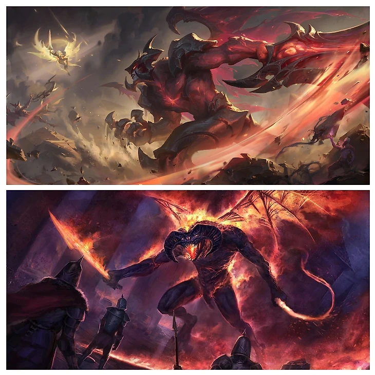 Навеки принадлежит сущность Атрокса своему мечу. Оружие стало темницей, где его дух томится в удушающем мраке, лишенный даже возможности умереть. Простой смертный, кто осмеливался взять меч в руки, мгновенно подчинялся воле Атрокса, и телом овладевал сам демон из глубин. Его визуальный образ вдохновлен Балрогом из Вселенной Толкиена. Именно фразой «Ты не пройдешь!» можно выиграть лайнстадию у Атрокса. 😁