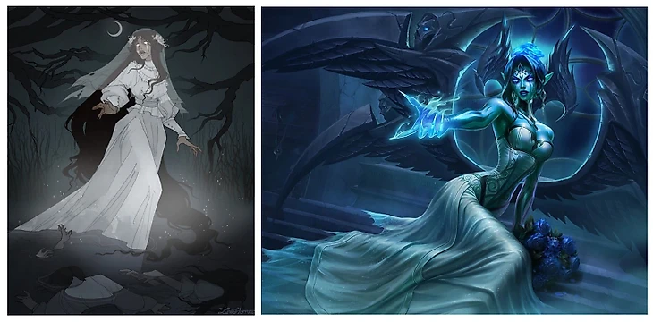 Ее персонаж – собирательный образ из мексиканского фольклора – плачущая женщина с именем Ла Йорона. По легенде Ла Йорону предал муж, и она утопилась вместе с двумя детьми. После ее дух стал бродить по рекам и озерам той местности и оплакивать своих погибших детей, извергая душераздирающие крики из-за скорби. При игре за Моргану, когда жмешь ульт (оковы души), можно услышать уникальный крик, который и отсылает к Ла Йороне. В Лиге Легенд даже выходил скин, приуроченный к этой истории, под названием: «Призрачная невеста Моргана».