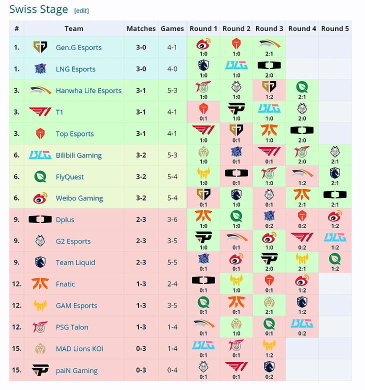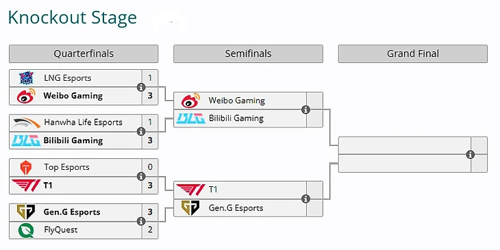Участники групповой стадии: Hanwha Life Esports, Gen.G Esports, Dplus, T1, Bilibili Gaming, Top Esports, LNG Esports, Weibo Gaming, G2 Esports, Fnatic, FlyQuest, Team Liquid.