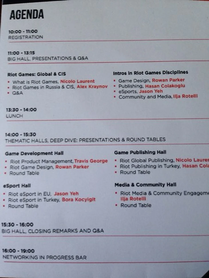 Перед тем как говорить о том, что было на конференции, сразу скажу, чего на конференции не было. Это мероприятие, как и было заявлено — об обмене опытом и о принципах работы Riot в России и за рубежом. На мероприятии НЕ было инсайдов, на мероприятии НЕ было анонсов. В общем-то, многие и журналисты, и те, с кем я пообщался, были этому факту разочарованы.