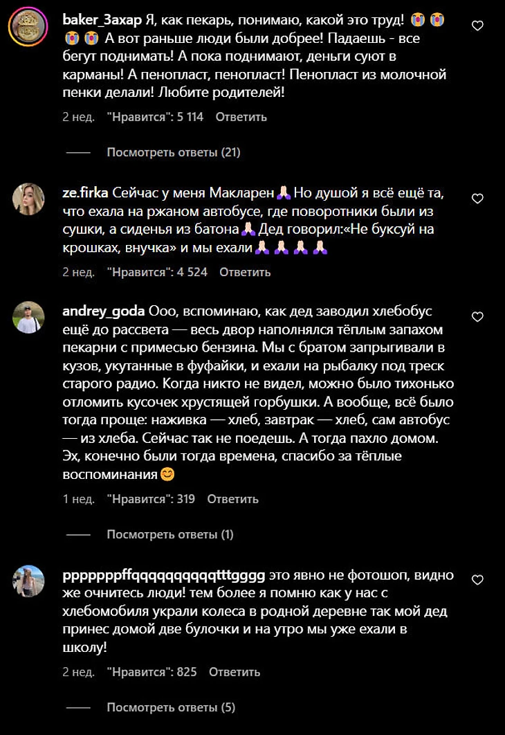 Комментаторы подыгрывают авторам и вспоминают, как ездили на хлебобусах в школу.