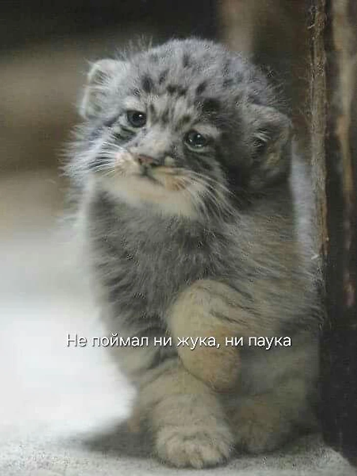 Новый мем – с малышом манулом, который будет охотиться на жука и паука.