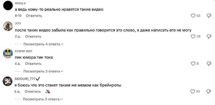 К тренду уже присоединились известные бренды и компании. Видео собирают миллионы просмотров, половина комментаторов тоже не понимают, чем они заслужили такие рекомендации в ленте.