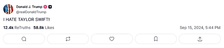 Президент США Дональд Трамп тоже не промолчал: «Я считаю, что он отличный парень, а она потрясающая личность, я желаю им большой удачи». И это неожиданно, потому что год назад он прямо заявлял «Я ненавижу Тейлор Свифт!». Президент невзлюбил поп-исполнительницу, когда она публично поддержала кандидатуру Камалы Харрис в предвыборной гонке.