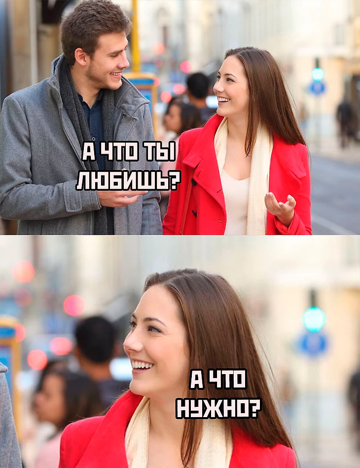 а) Подстраивается под мужские вкусы: