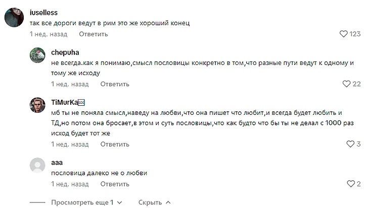 Изначально мем начал форситься в англоязычном Тиктоке с тегом #allroadsleadtorome с посылом, что все действия сходятся к одной точке. В России закрепился тег #времяпокажет со схожим посылом, хотя встречается и вариант использования тега с дословным переводом #вседорогиведутврим. Открытость формулировки и варианты трактовки запустили ряд споров вокруг значения мема.