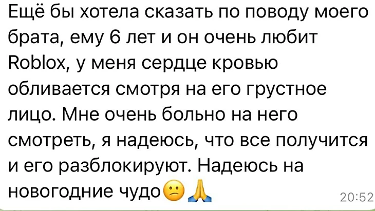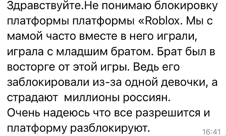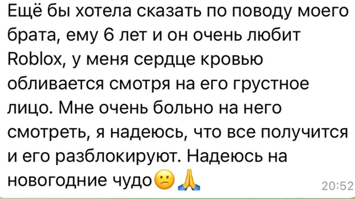У Roblox одна из самых преданных аудиторий – игроки искренне переживают за судьбу платформы. Основным публичным каналом, куда обращались дети и их семьи, стал канал Екатерины Мизулиной.