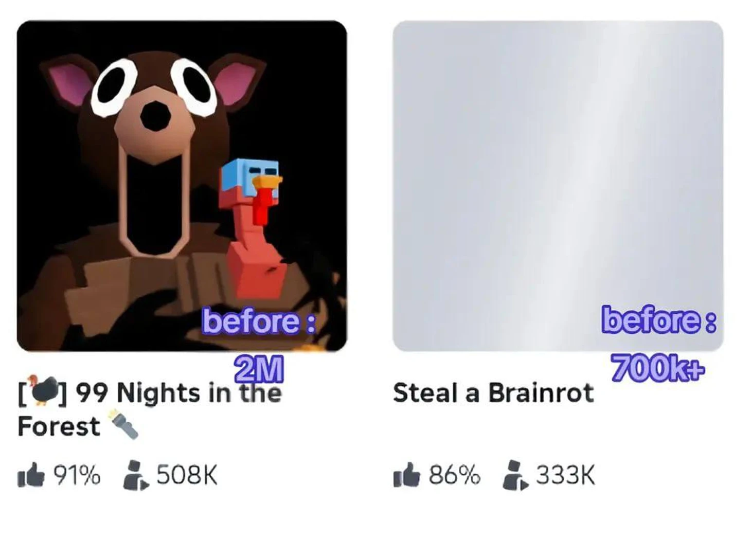 Пользователи заметили резкое падение онлайна в Roblox: на популярных плейсах фиксировали отток более чем 60% игроков. В «99 Nights in the Woods» онлайн снизился на 1,5 млн пользователей. В целом посещаемость платформы упала на 50%.