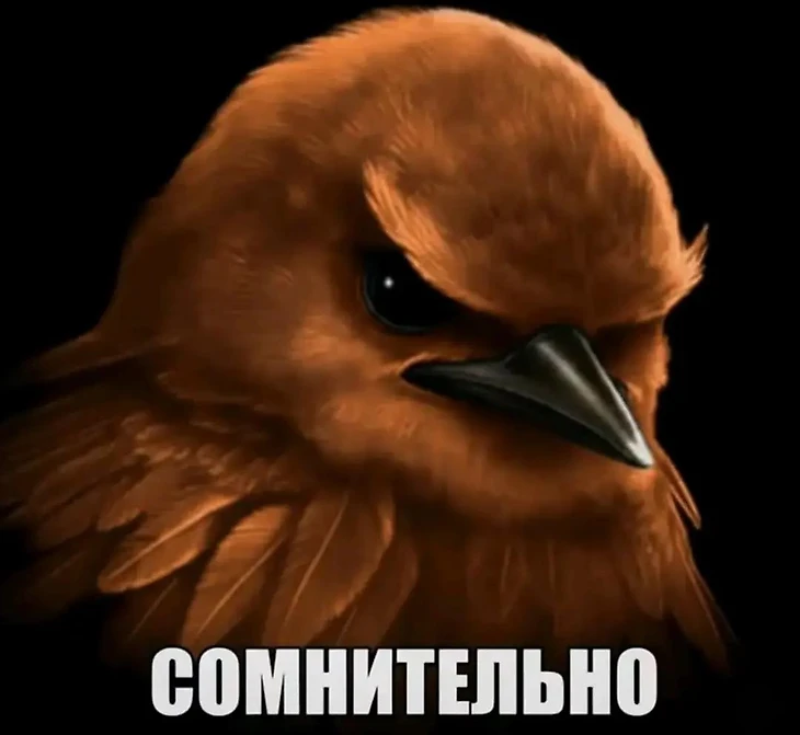 Хоть интернет и любит абсурдные картинки, этот мем – не случайная шутка. Серьезный вид птиц разных цветов и лаконичные подписи создали популярный шаблон, которым выражают сомнение или неуверенность. Чаще всего «неуверенных птиц» используют в комментариях к видео и в виде стикеров в мессенджерах.