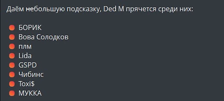 Личность Ded M до сих пор официально не раскрыта. Сам псевдоним явно отсылает к образу Деда Мороза, а Betsy в своих социальных сетях предлагает угадать кто может им быть:
