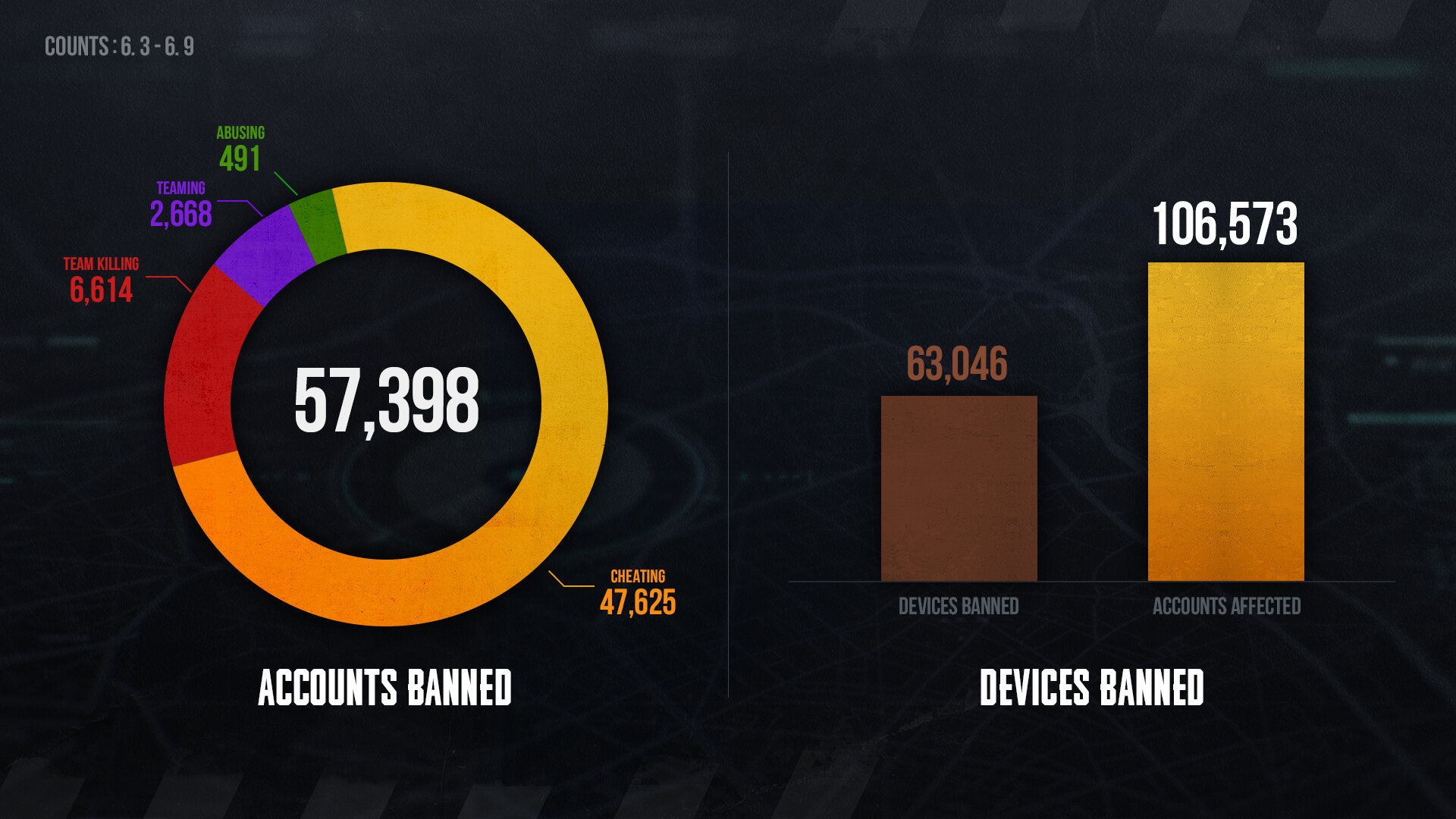 Разработчики игры забанили более 57 тысяч аккаунтов в период с 3 по 9 июня. Из них: