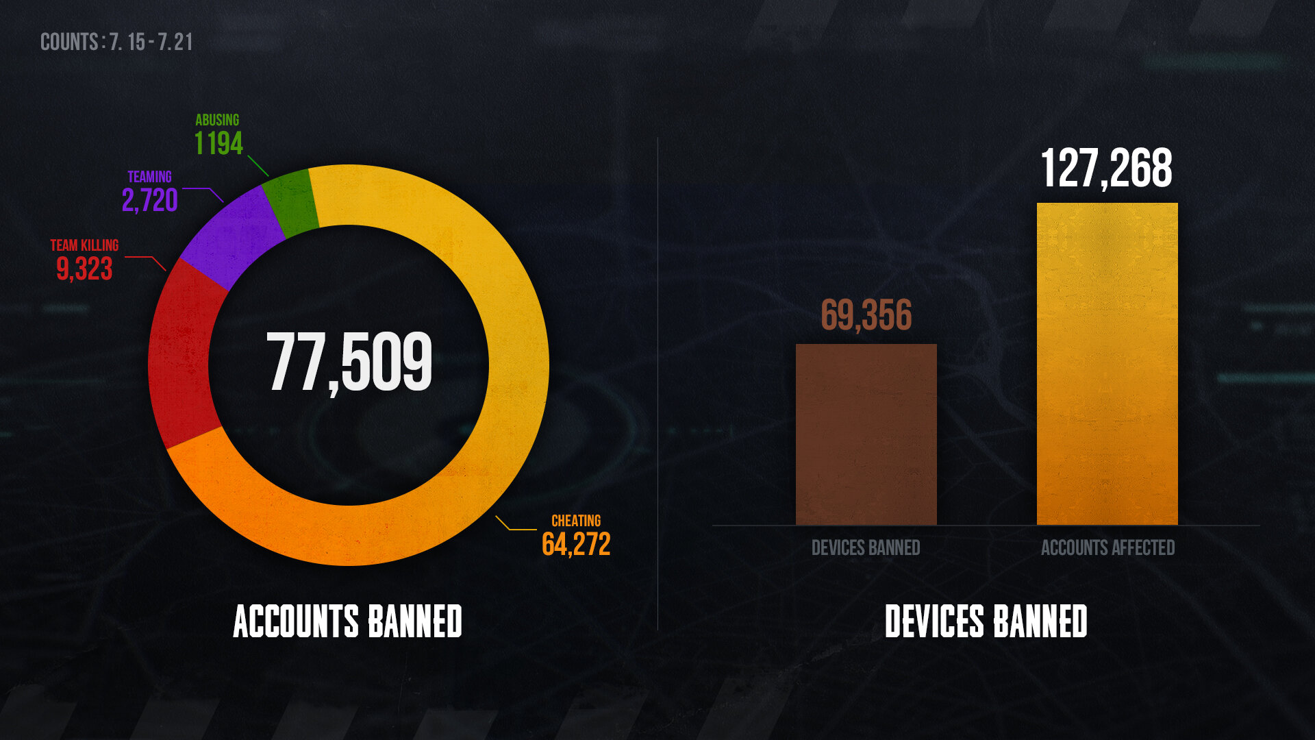 В период с 15 по 21 июля разработчики игры забанили более 77 тысяч аккаунтов. Из них: