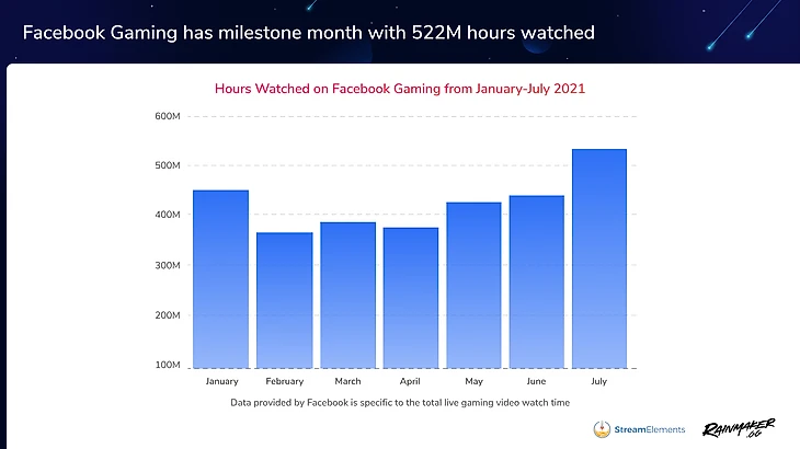 В июле Facebook Gaming показал рекордный показатель в 533 миллиона часов. В феврале число часов не достигло и 400 миллионов.