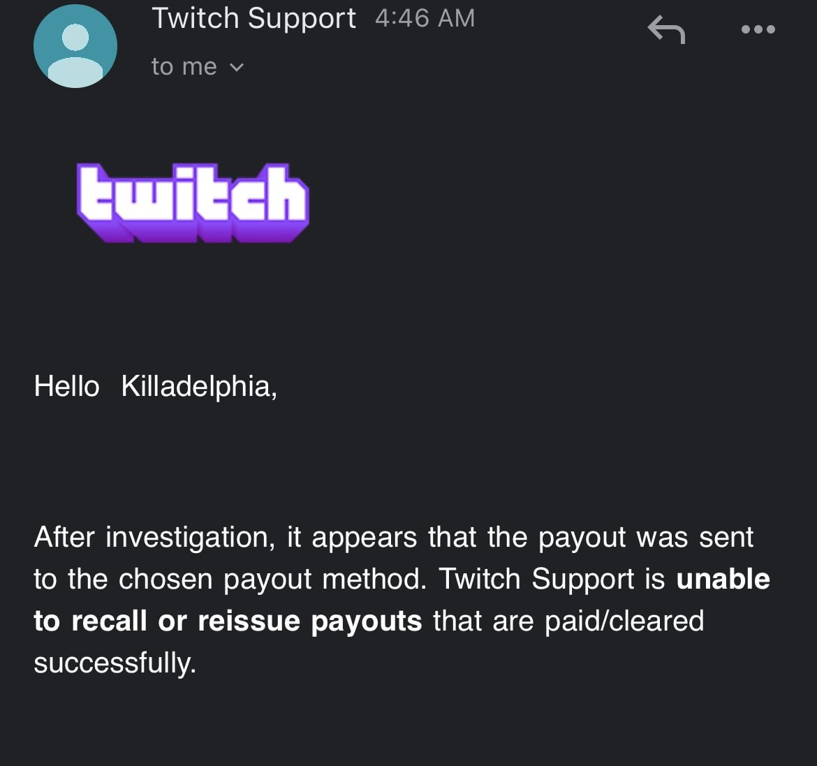 Он пытался обратиться в поддержку, но внятного ответа сотрудники платформы так и не предоставили. Стример опубликовал скриншот ответа в твиттере.