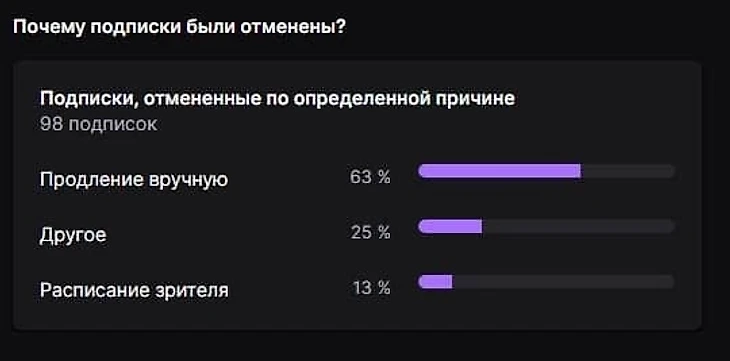 После отмены подписки зритель проходит небольшой опрос, где и выясняется причина отписки. Сейчас опрос могут пройти только зрители с браузера.